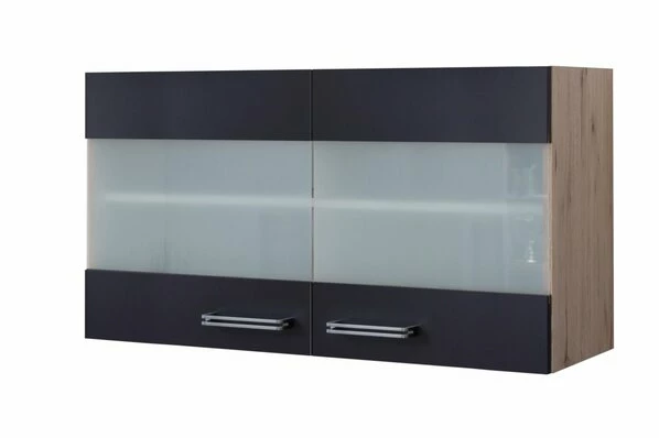 Glas-Hängeschrank RISENTO – Antharzit – San Remo Eiche – 100 Cm