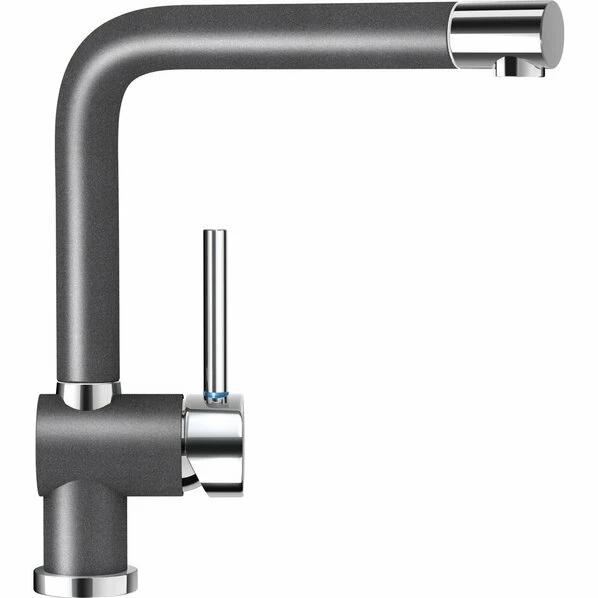 Mit dieser Hochdruck-Küchenarmatur erhalten Sie einen modernen Hingucker für Ihre Küche. Die abgerundete L-Form und der Kontrast zwischen glänzenden Edelstahl-Elementen und matter, dunkler Oberfläche sind zeitlos. Bewegungsspielraum bietet der um 360° schwenkbare und hohe Auslauf. Ein einfacher Wechsel zwischen Kalt- und Warmwasser ermöglicht Ihnen der Einhandhebel. Der schnelle Einbau der Hochdruckarmatur wird Ihnen durch die im Lieferunfang enthaltenen Anschlussschläuche für Warm- und Kaltwasser erleichtert. In der Spüle benötigen Sie eine Lochbohrung mit einem Durchmesser von 3,5 cm.