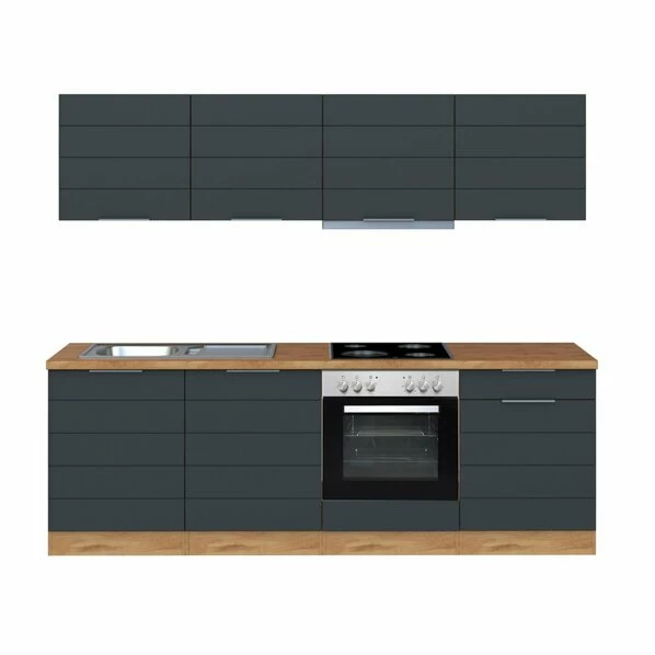 Küchenblock MORENA – Basaltgrau Matt-Eiche San Remo – 210 Cm – Mit E-Geräte