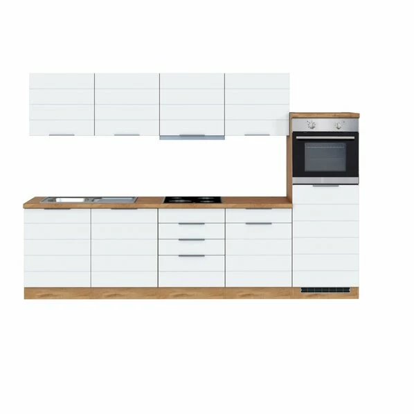 Küchenblock FLORENZ – Weiß Matt-Wotan Eiche – Mit E-Geräten – 300 Cm