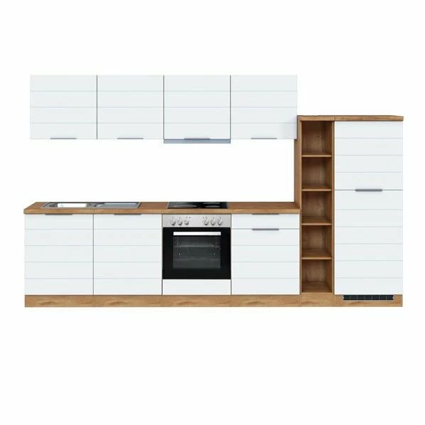 Küchenblock FLORENZ – Weiß Matt – Wotan Eiche – Mit E-Geräten – 330 Cm