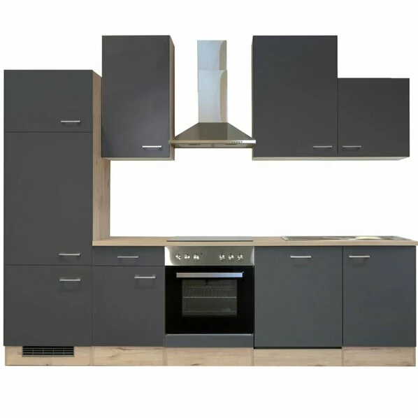 Küchenblock MORENA – Basaltgrau Matt – San Remo Eiche – Mit E-Geräten – 280 Cm