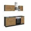 Die Buche Nachbildung macht diesen Küchenblock NANO zur zeitlosen Augenweide! Für reichlich Stauraummöglichkeiten sorgen ein Hochschrank, eine Anrichte und ein Spülenunterschrank. Im oberen Bereich bieten sich insgesamt drei Hängeschränke an, dort Ihr Geschirr und andere Küchenutensilien zu verstauen. Neben den geräumigen Schränken sind im Lieferumfang ein Einbauherd mit Glaskeramikkochfeld, ein Geschirrspüler und eine Kopffreihaube mit inbegriffen. Diese Küche bringt alles mit, was Ihr Herz begehrt!