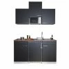 RESPEKTA Küchenzeile – Schwarz – Eiche Sägerau – Mit E-Geräten – 210 Cm