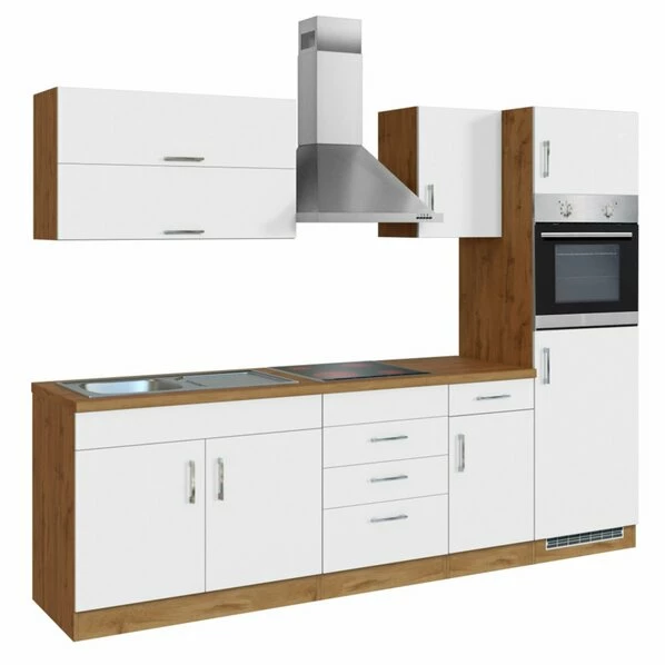 Küchenblock SORRENTO – Weiß – Wotan Eiche – Mit E-Geräten – 270 Cm