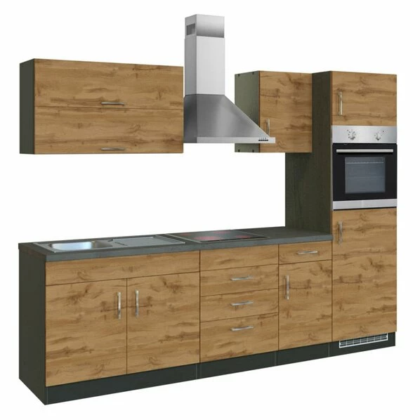 Küchenblock SORRENTO – Wotan-Eiche – Grafit – Mit E-Geräten – 270 Cm