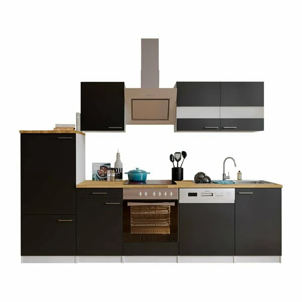 RESPEKTA Küchenblock – Schwarz – Mit E-Geräten – 280 Cm