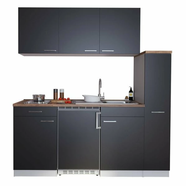 RESPEKTA Küchenzeile – Schwarz – Mit E-Geräten – 180 Cm