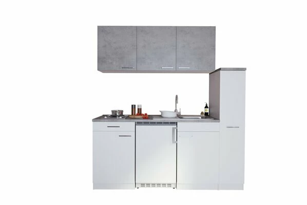 RESPEKTA Küchenzeile – Weiß – Beton – Mit E-Geräten – 180 Cm