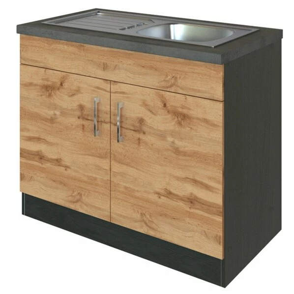 Spülenunterschrank SORRENTO – Wotan Eiche – Grafit – 100 Cm Breit